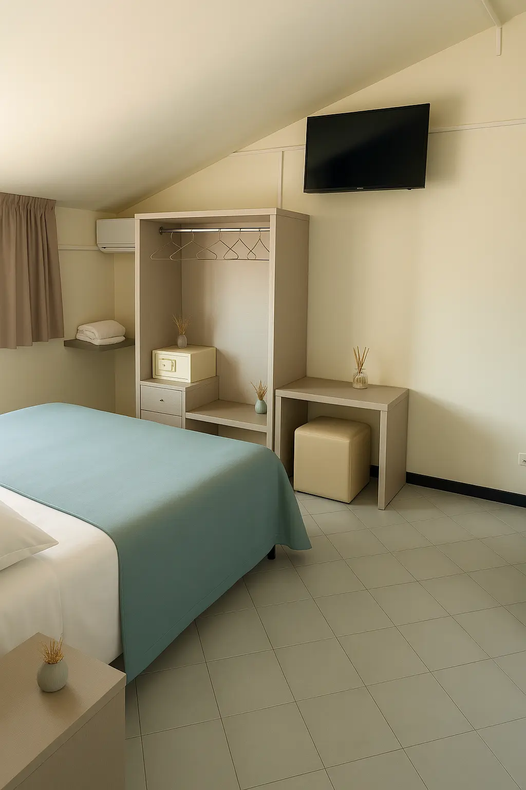 Letti comodi, bagni rinnovati con doccia, aria condizionata, balcone, cassaforte e tutti i comfort essenziali per ricaricarvi dopo una giornata di sole.