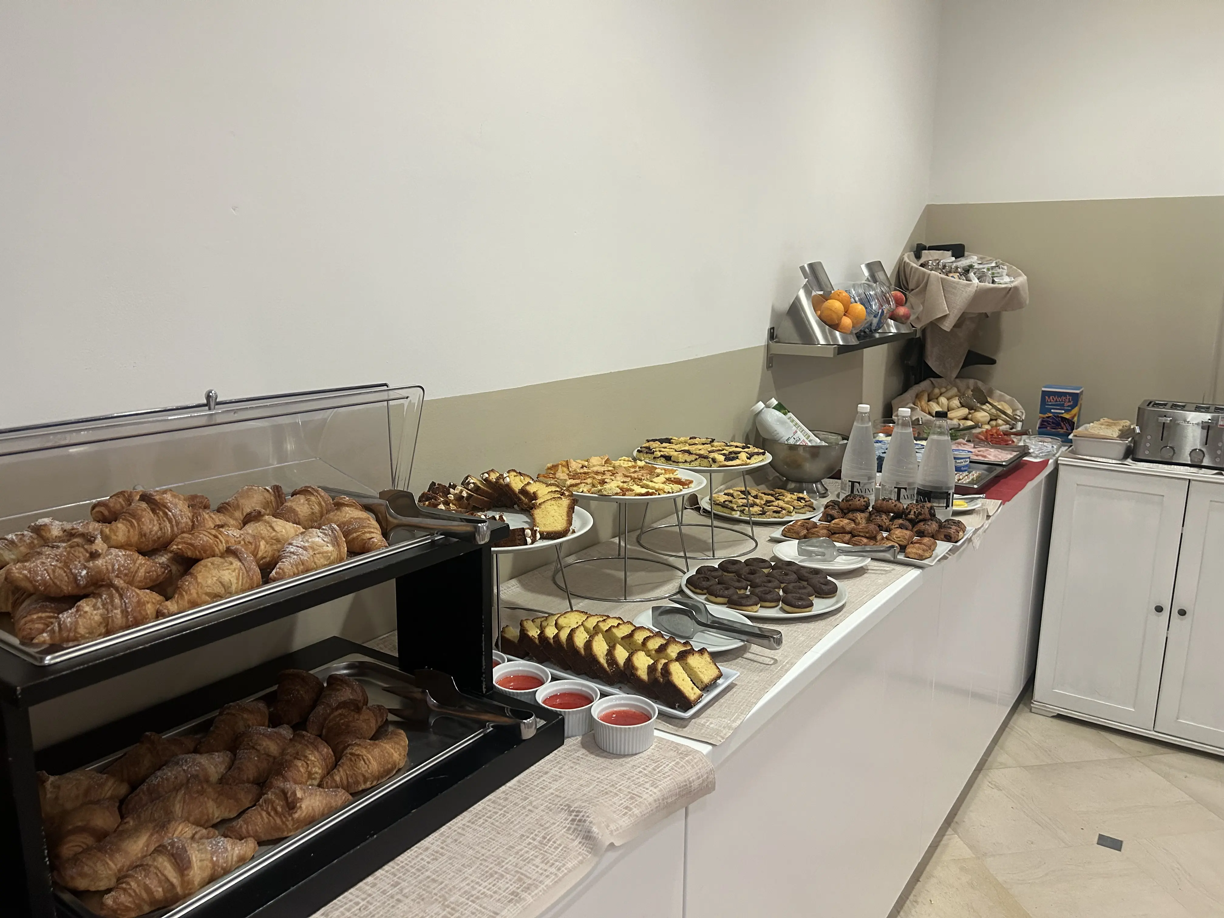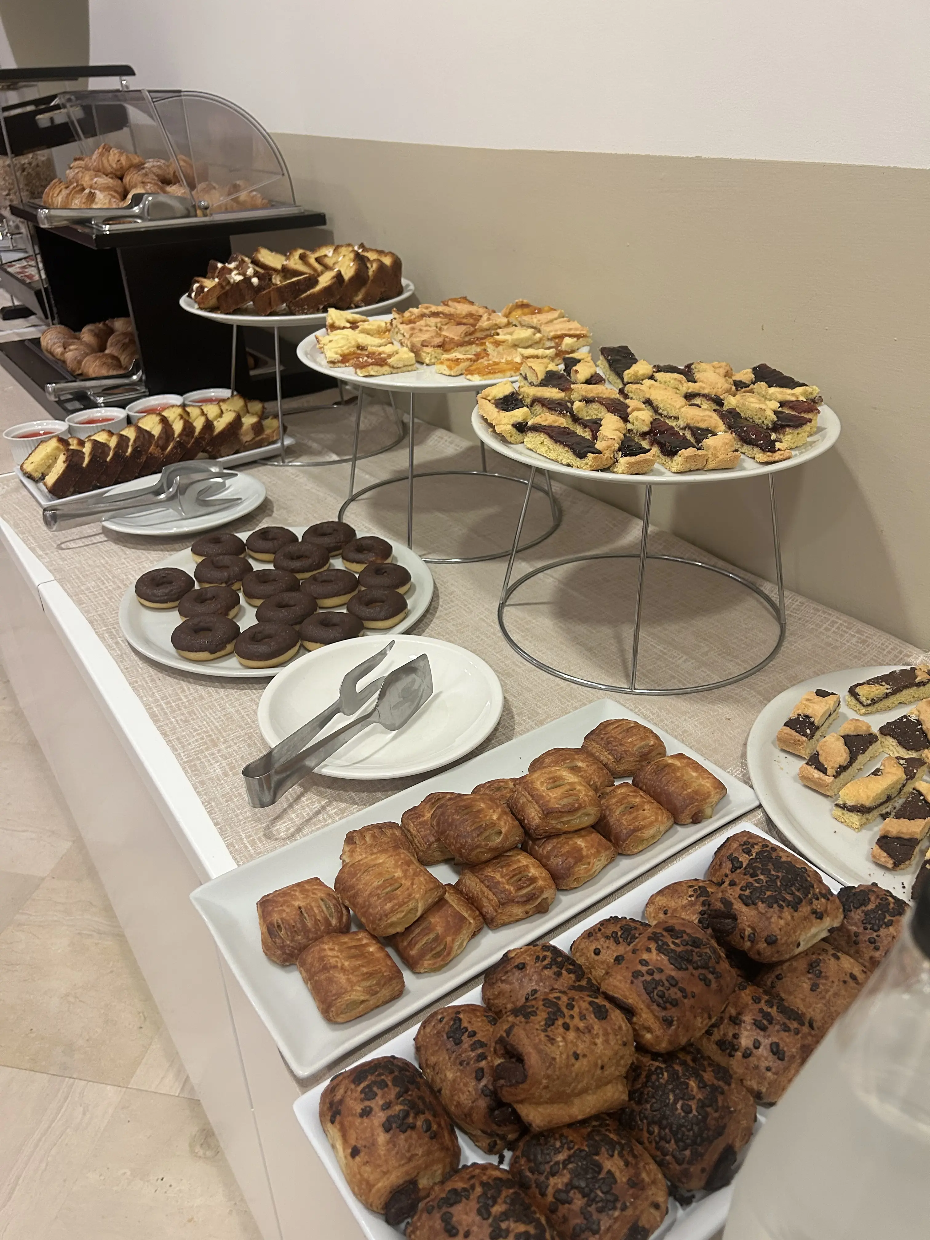 La giornata inizia con una colazione ricca e profumata: torte fatte in casa, ciambelle, croissant, marmellate, yogurt, cereali e proposte salate per chi ama una colazione più sostanziosa.