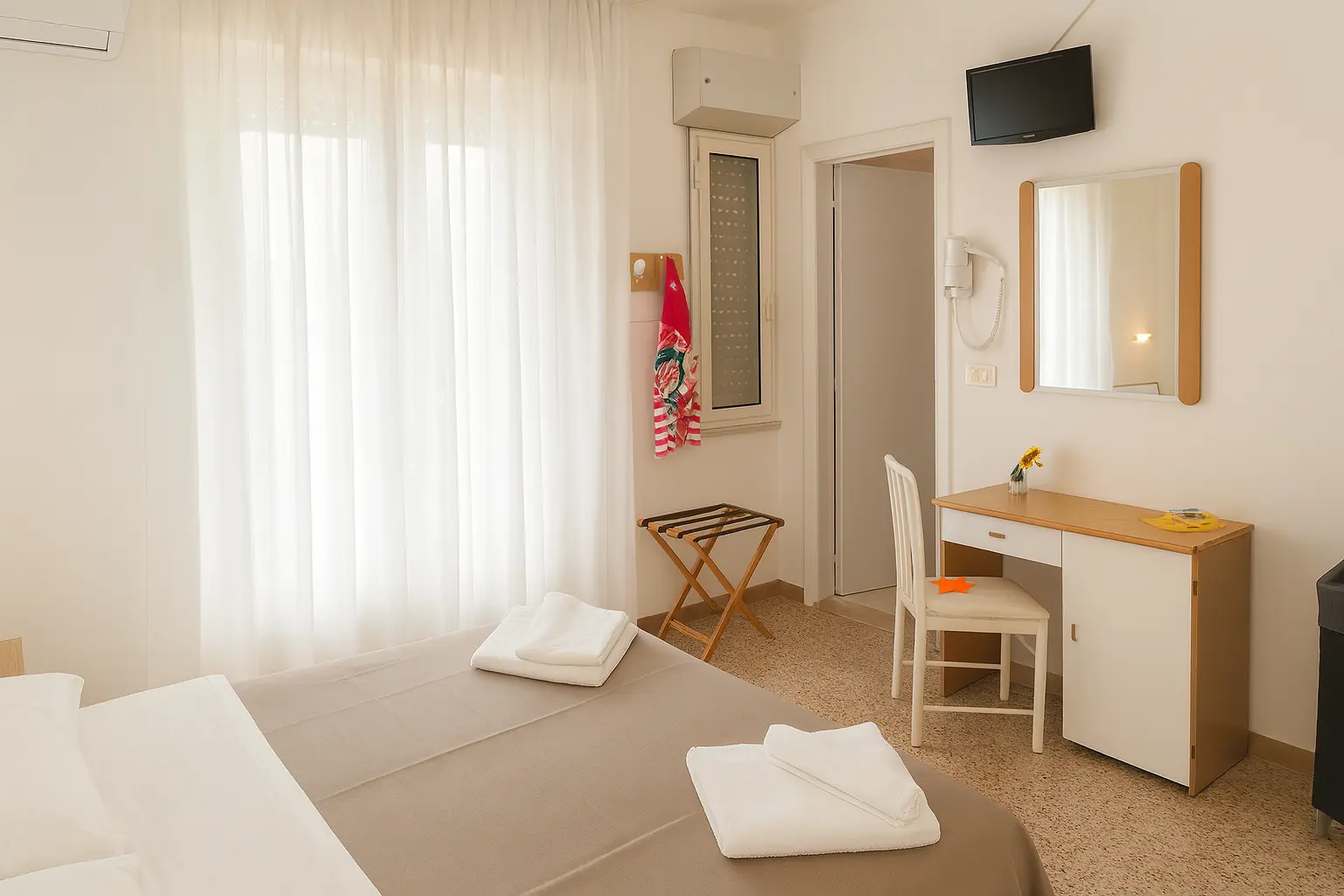 Camere pensate per il vostro relax, a pochi passi dal mare e dalle Terme di Riccione.